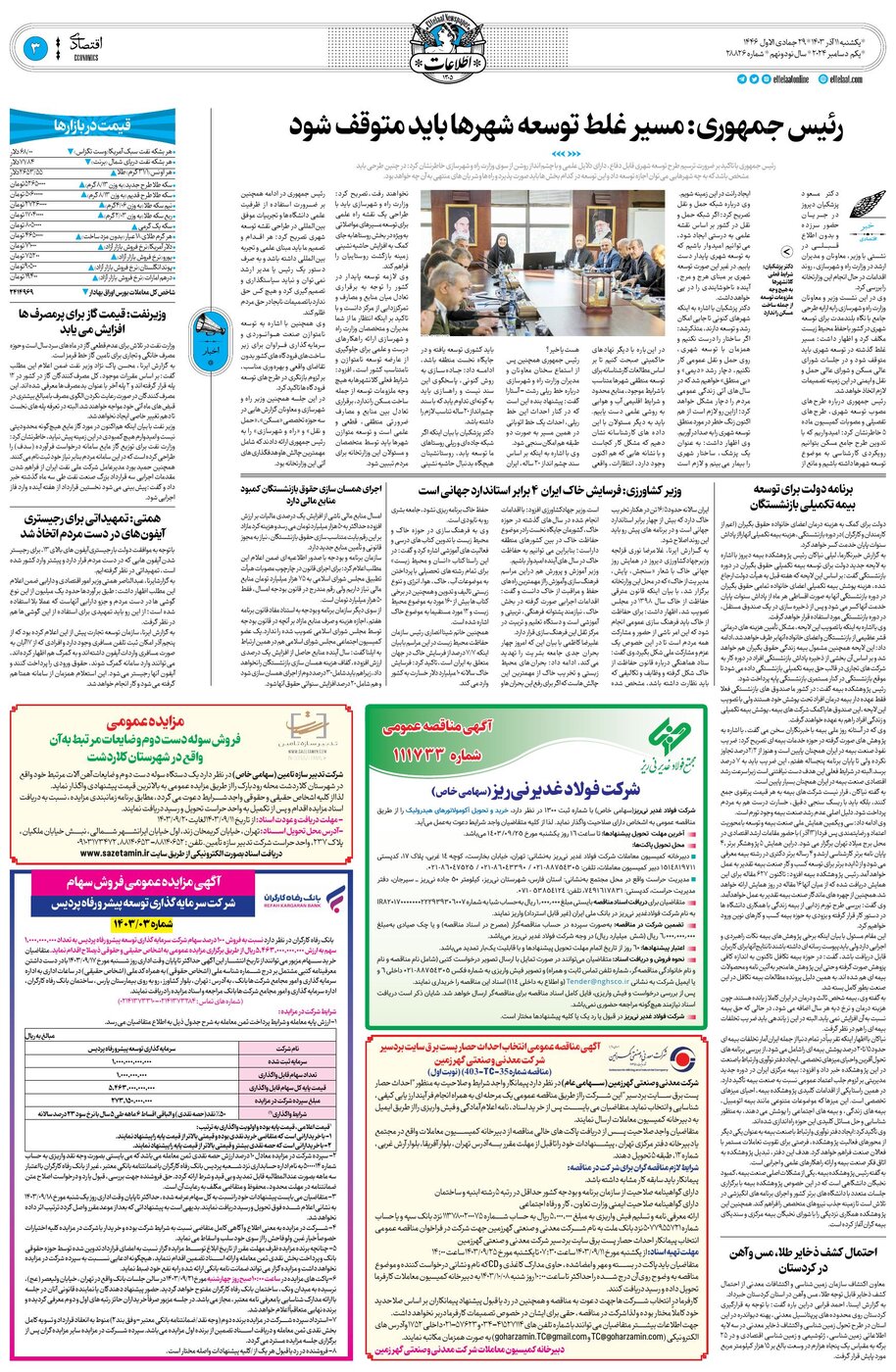 28826 - روزنامه اطلاعات - ۱۴۰۳-۰۹-۱۱