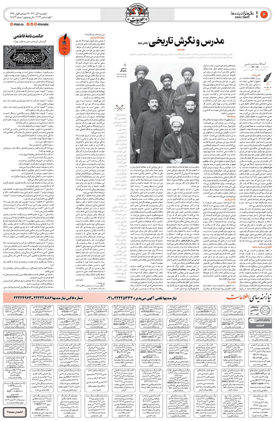28826 - روزنامه اطلاعات - ۱۴۰۳-۰۹-۱۱