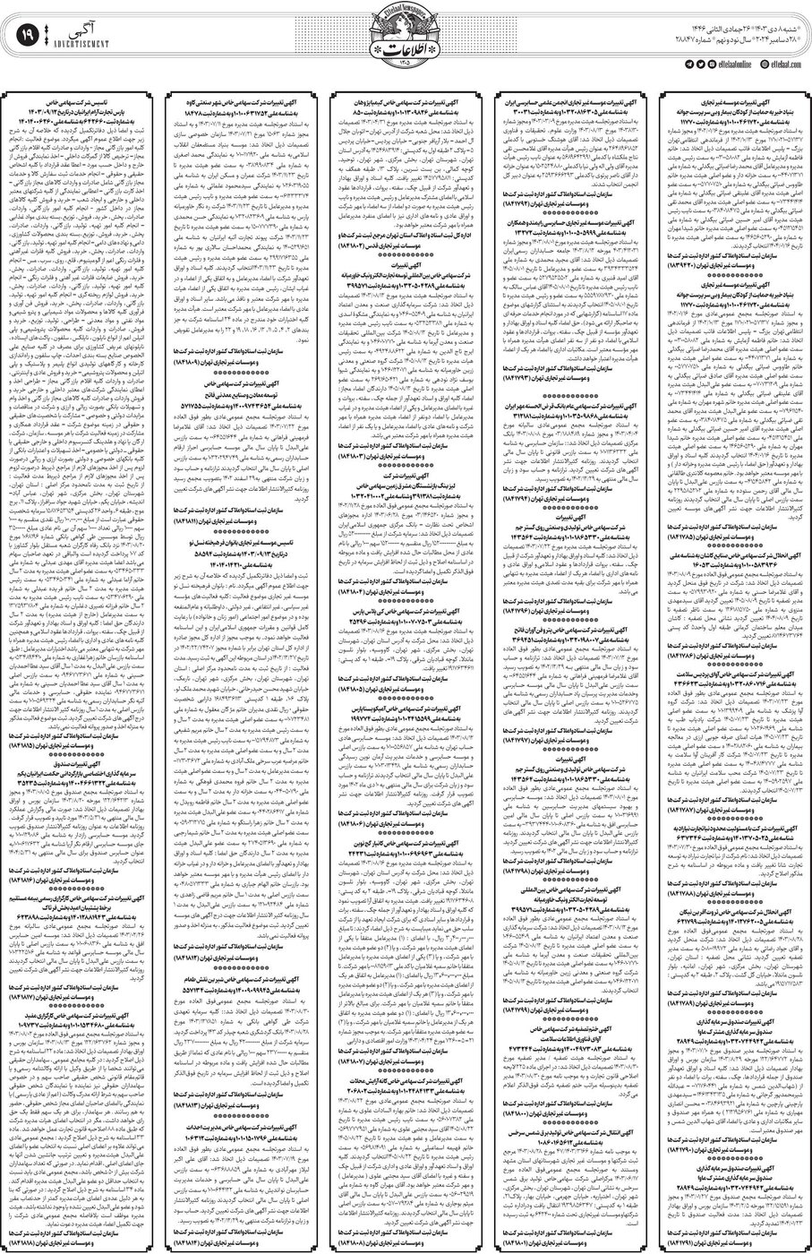 ۱۴۰۳-۱۰-۱۹ - روزنامه اطلاعات
