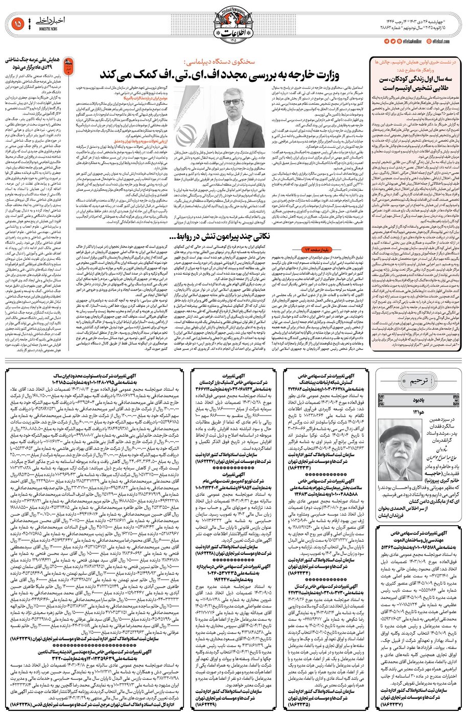 28862 - روزنامه اطلاعات - ۱۴۰۳-۱۰-۲۶