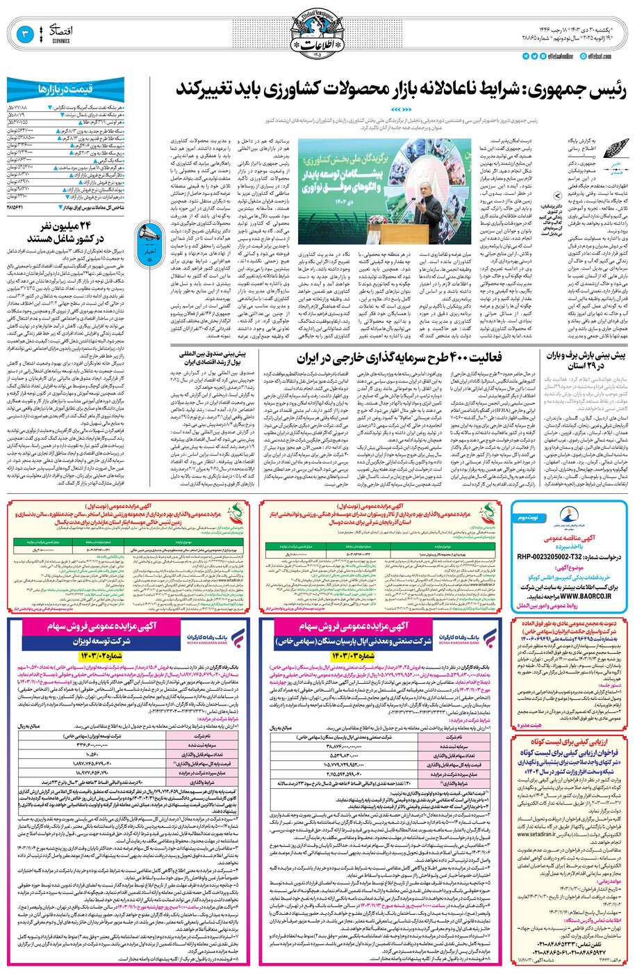 28865 - روزنامه اطلاعات - ۱۴۰۳-۱۰-۳۰
