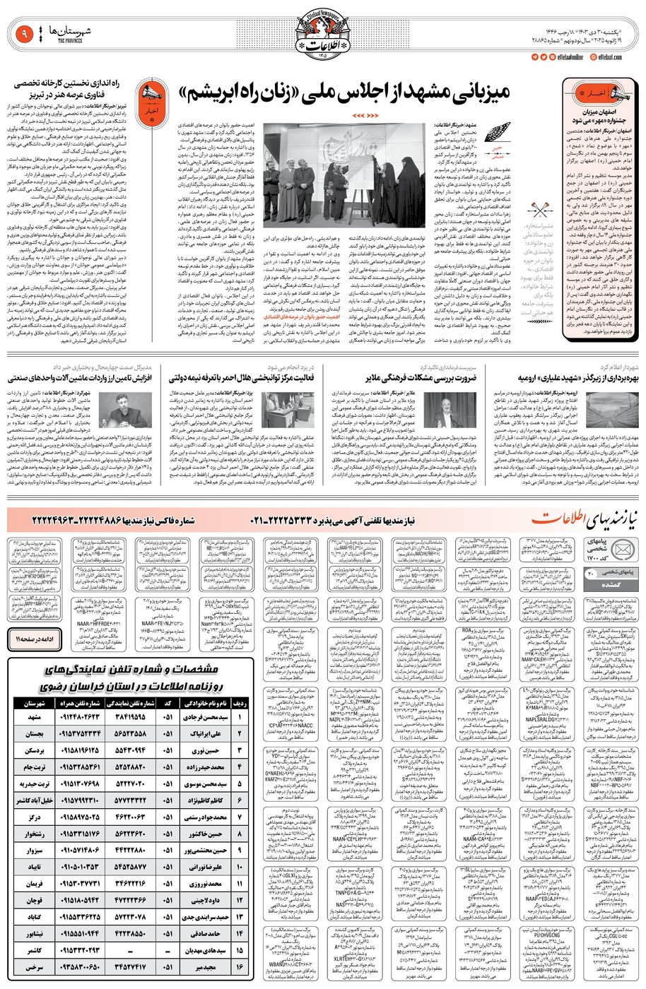۱۴۰۳-۱۰-۰۹ - روزنامه اطلاعات