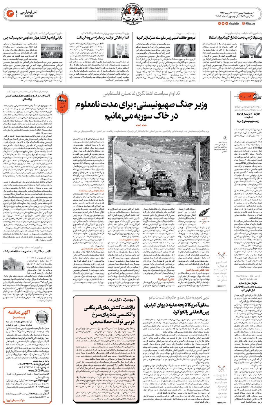 28874 - روزنامه اطلاعات - ۱۴۰۳-۱۱-۱۱
