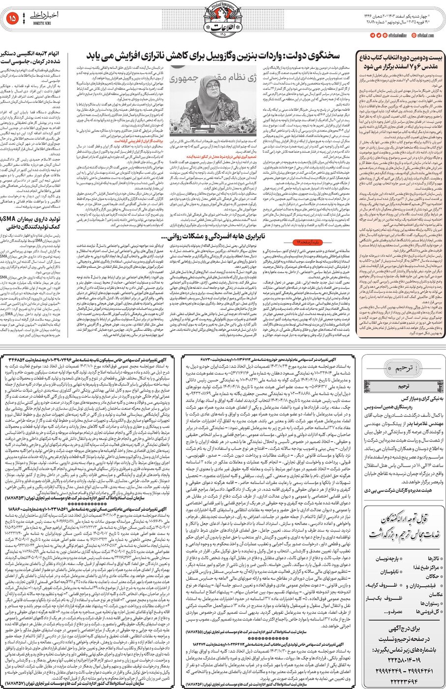 ۱۴۰۳-۱۲-۱۹ - روزنامه اطلاعات