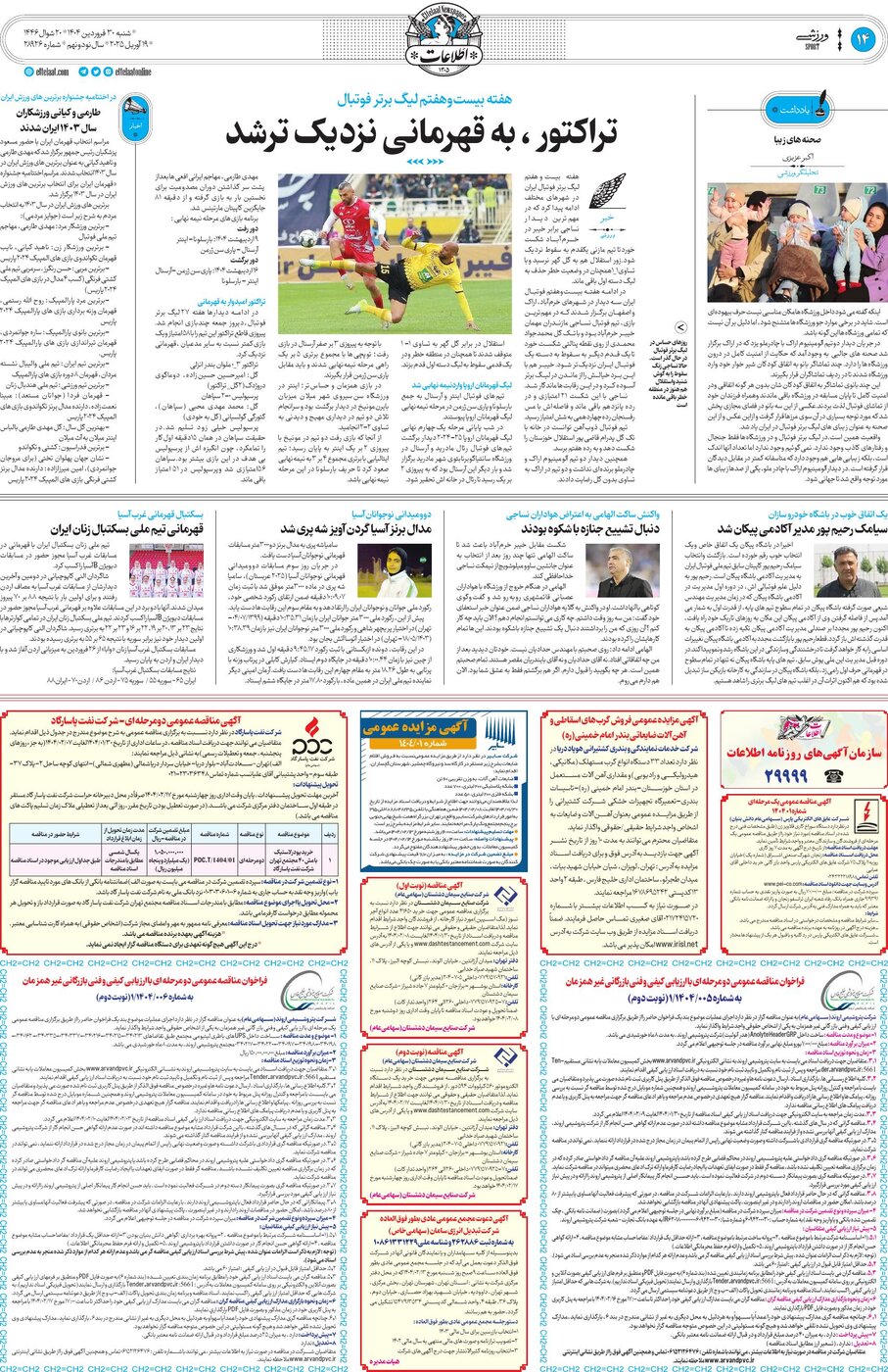 ۱۴۰۴-۰۲-۱۴ - روزنامه اطلاعات