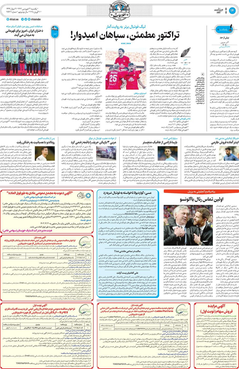 ۱۴۰۴-۰۱-۳۱ - روزنامه اطلاعات