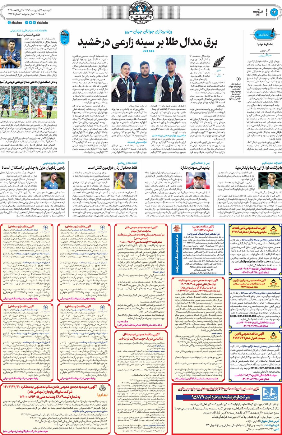 ۱۴۰۴-۰۳-۱۲ - روزنامه اطلاعات