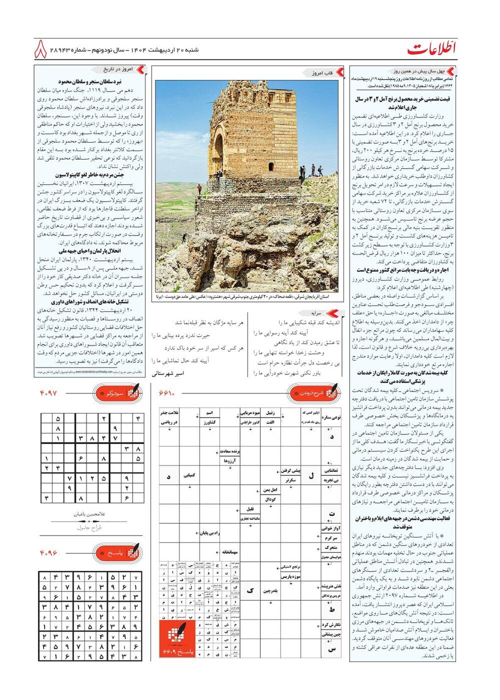 28943 - روزنامه اطلاعات - ۱۴۰۴-۰۲-۲۰