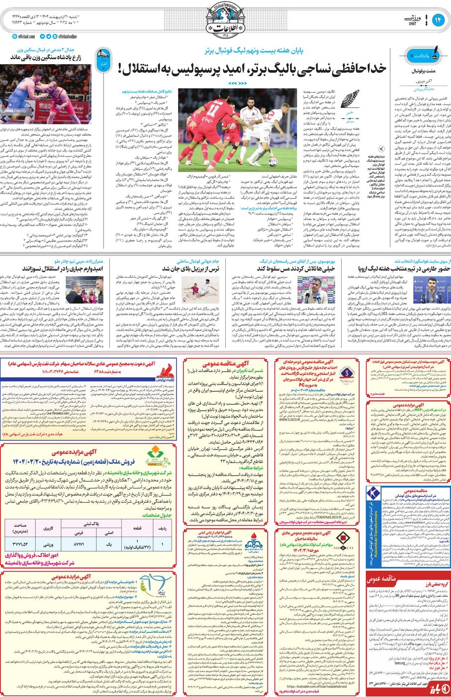۱۴۰۴-۰۲-۱۴ - روزنامه اطلاعات