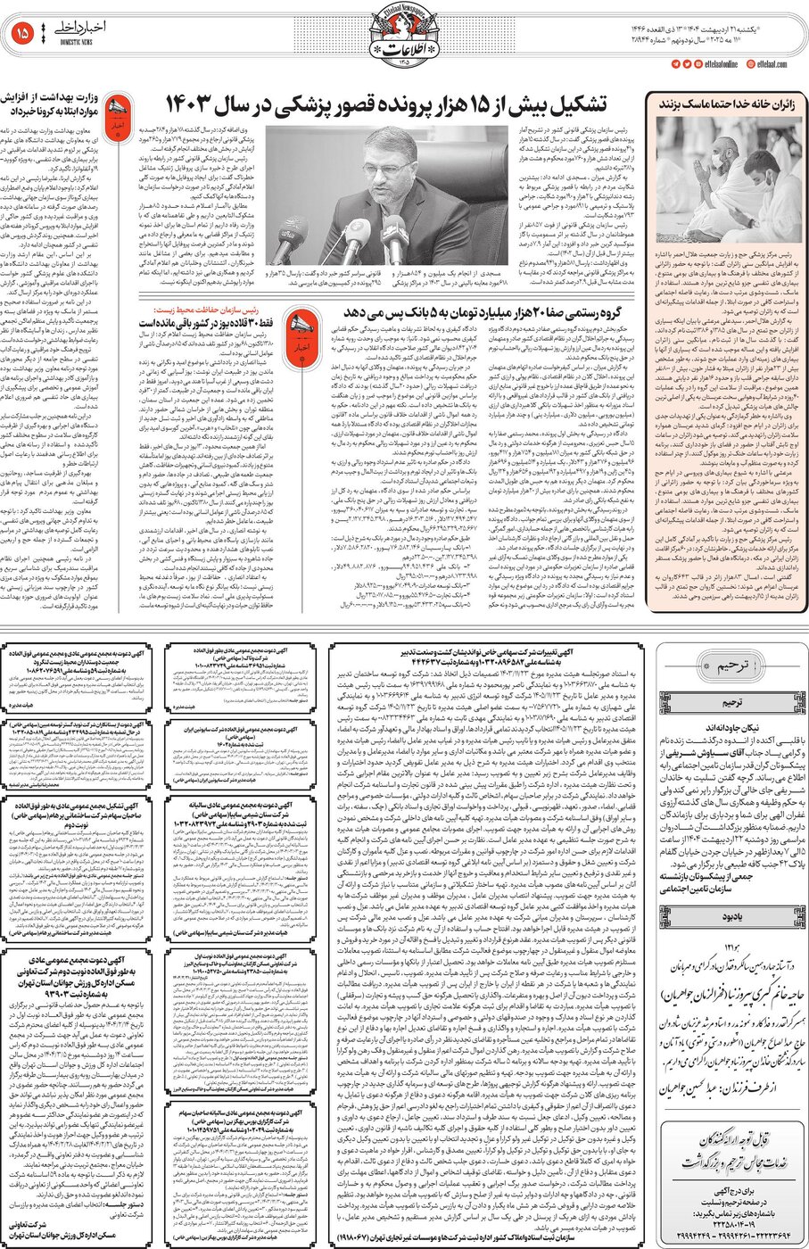 ۱۴۰۴-۰۲-۱۵ - روزنامه اطلاعات