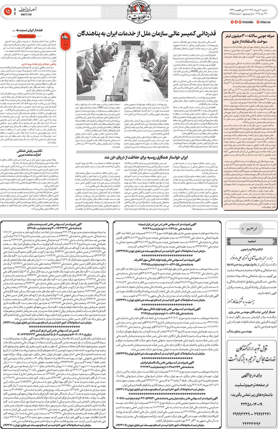 ۱۴۰۴-۰۳-۱۹ - روزنامه اطلاعات