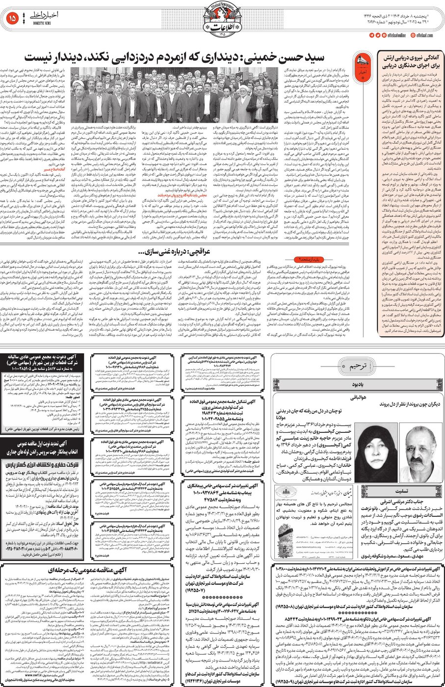 ۱۴۰۴-۰۳-۱۹ - روزنامه اطلاعات