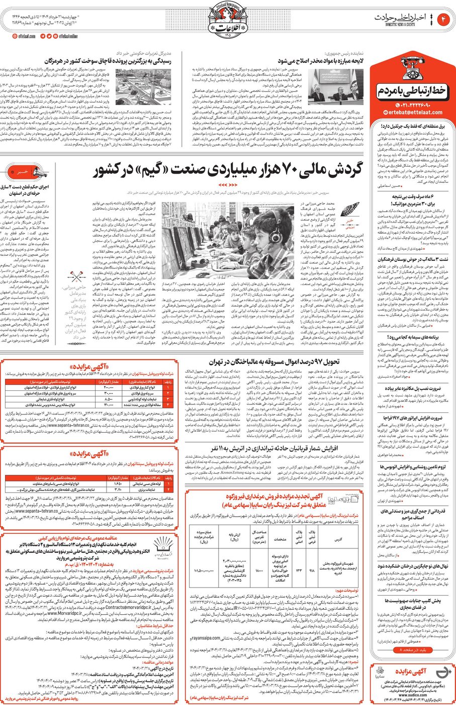 ۱۴۰۴-۰۴-۰۳ - روزنامه اطلاعات
