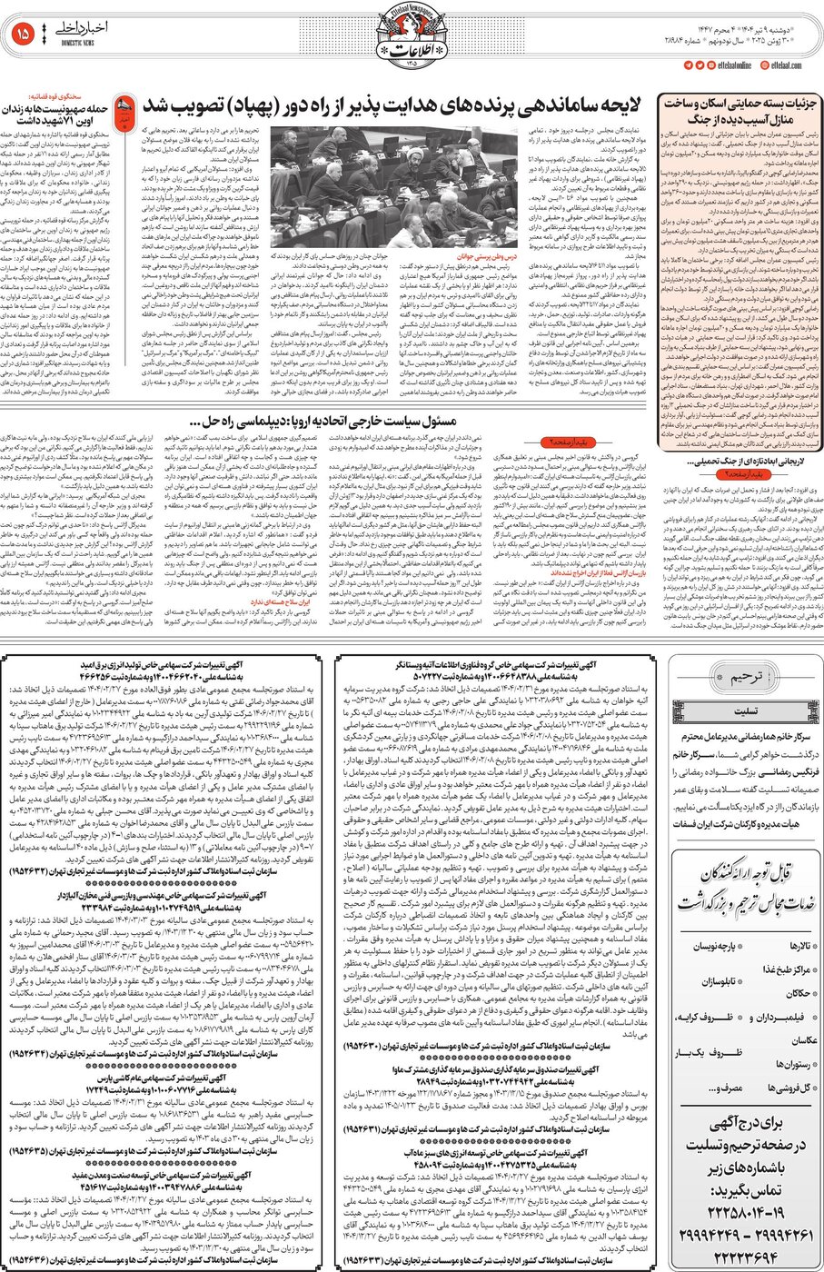 ۱۴۰۴-۰۴-۱۹ - روزنامه اطلاعات