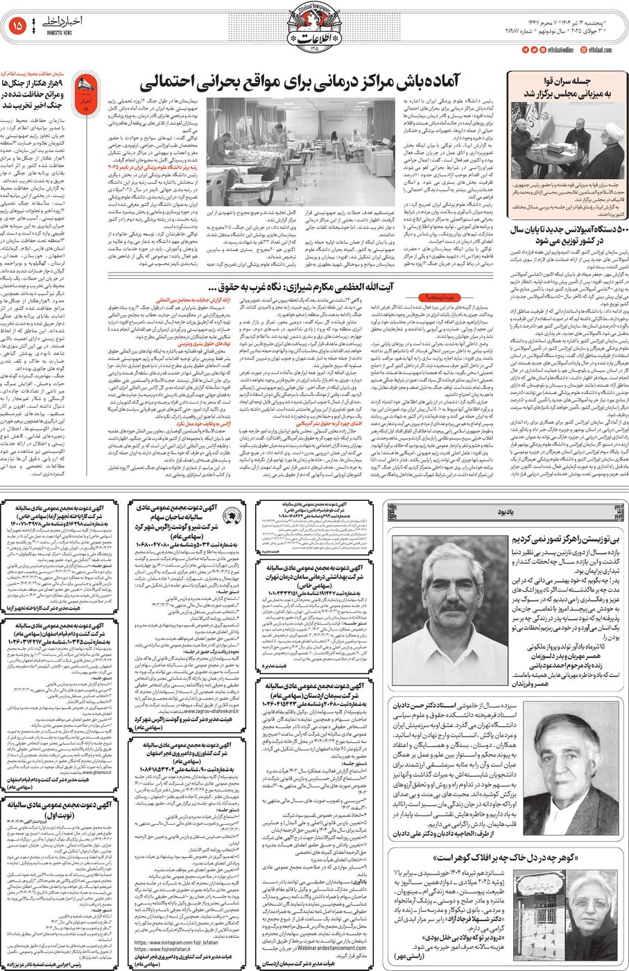 ۱۴۰۴-۰۴-۱۹ - روزنامه اطلاعات
