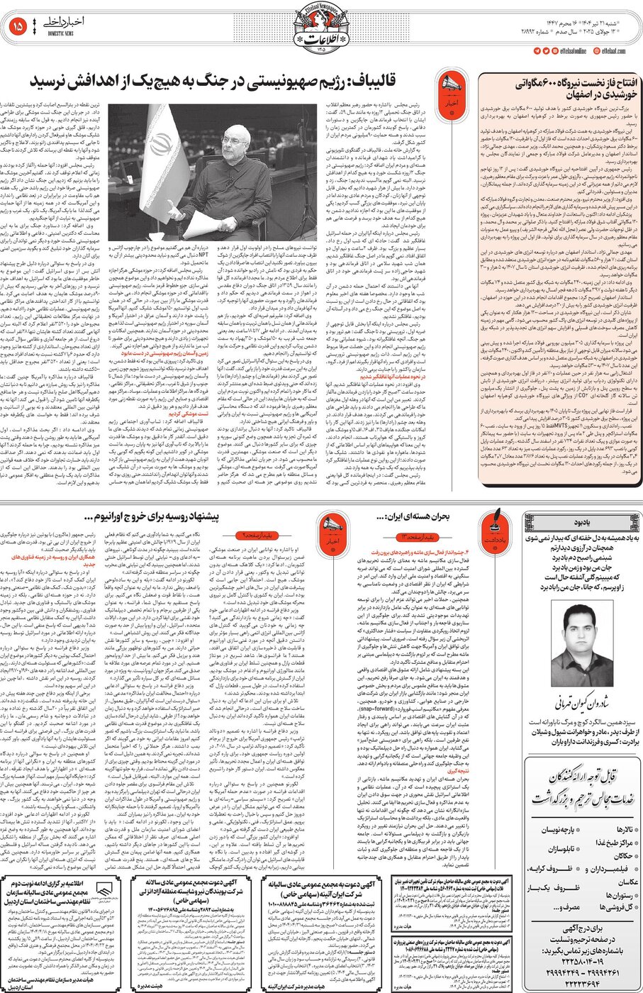 ۱۴۰۴-۰۵-۱۵ - روزنامه اطلاعات