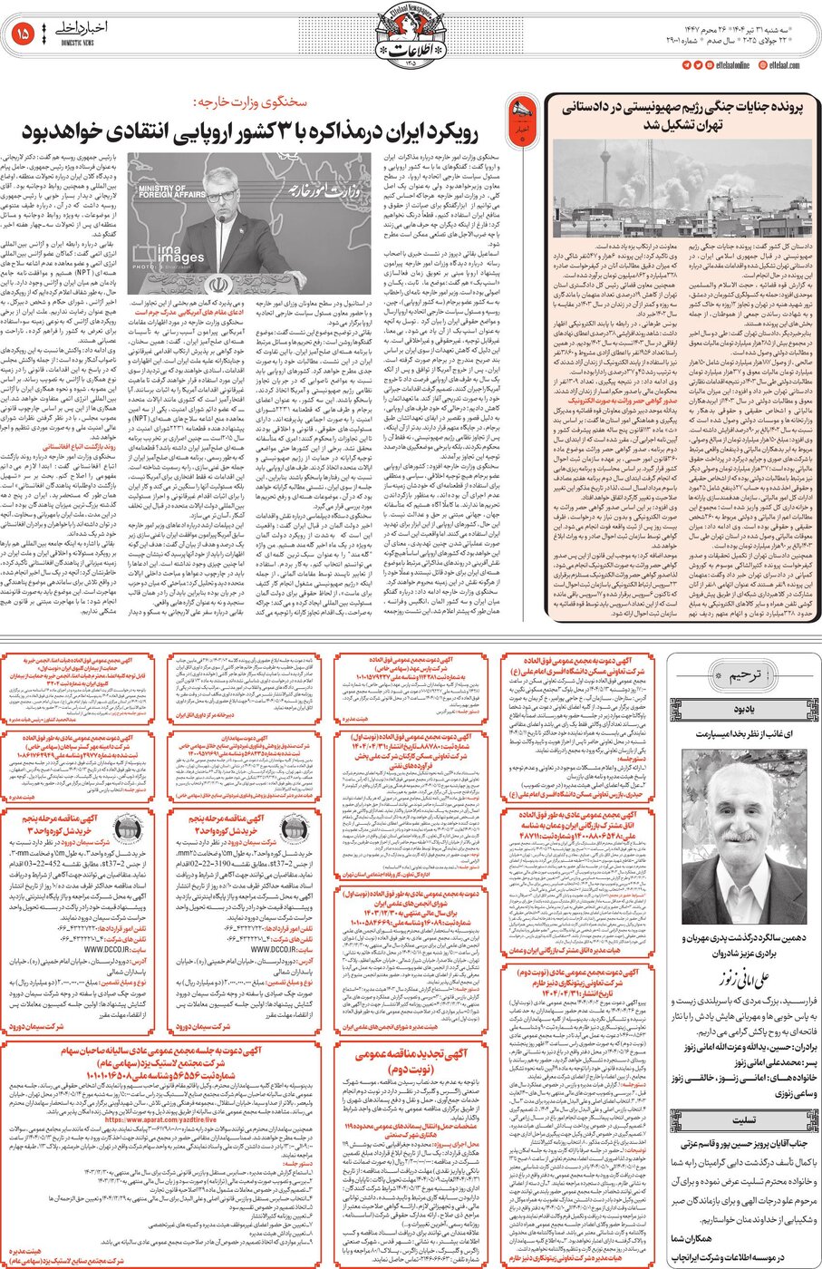 29001 - روزنامه اطلاعات - ۱۴۰۴-۰۴-۳۱