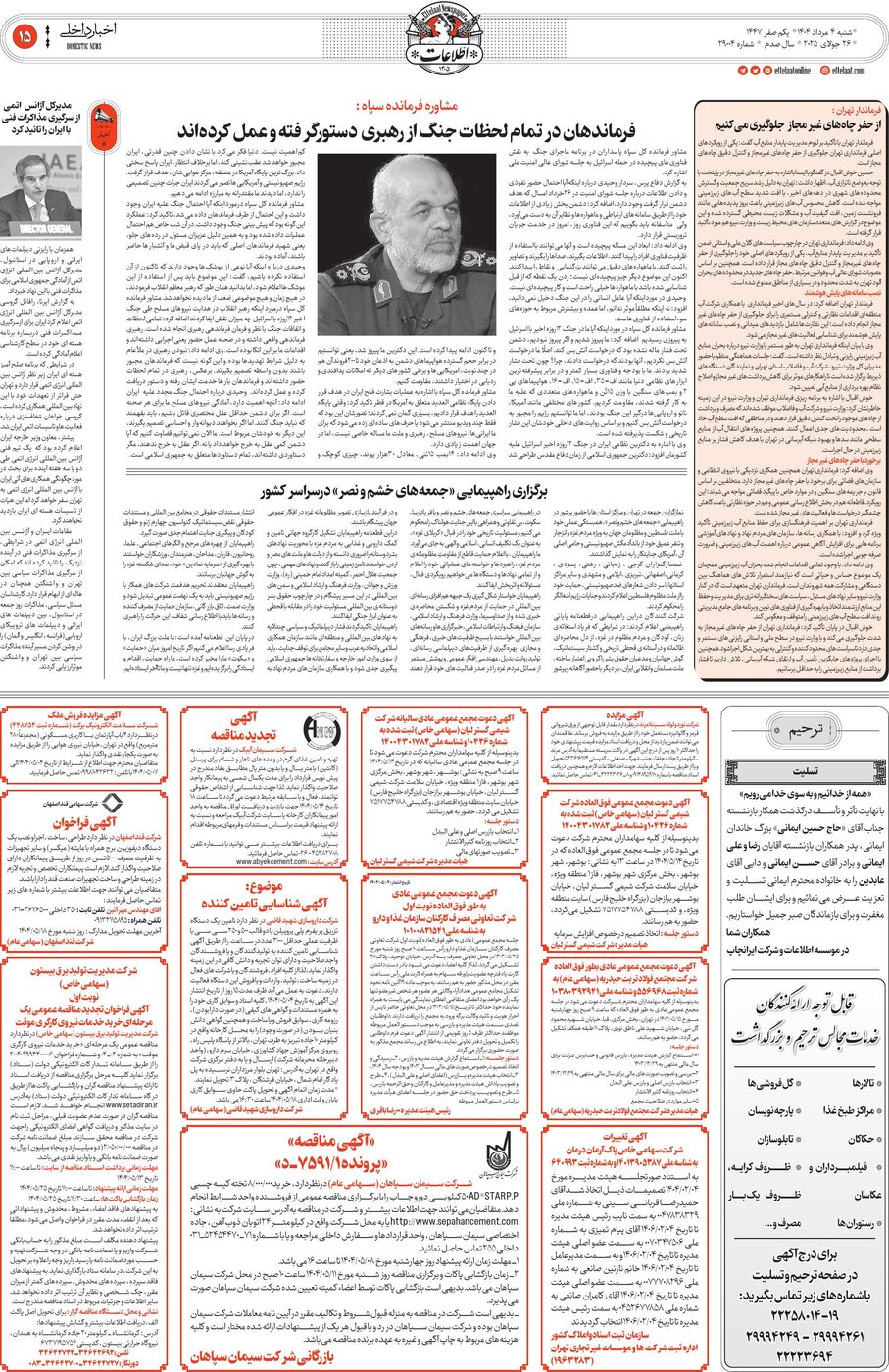 ۱۴۰۴-۰۶-۰۳ - روزنامه اطلاعات