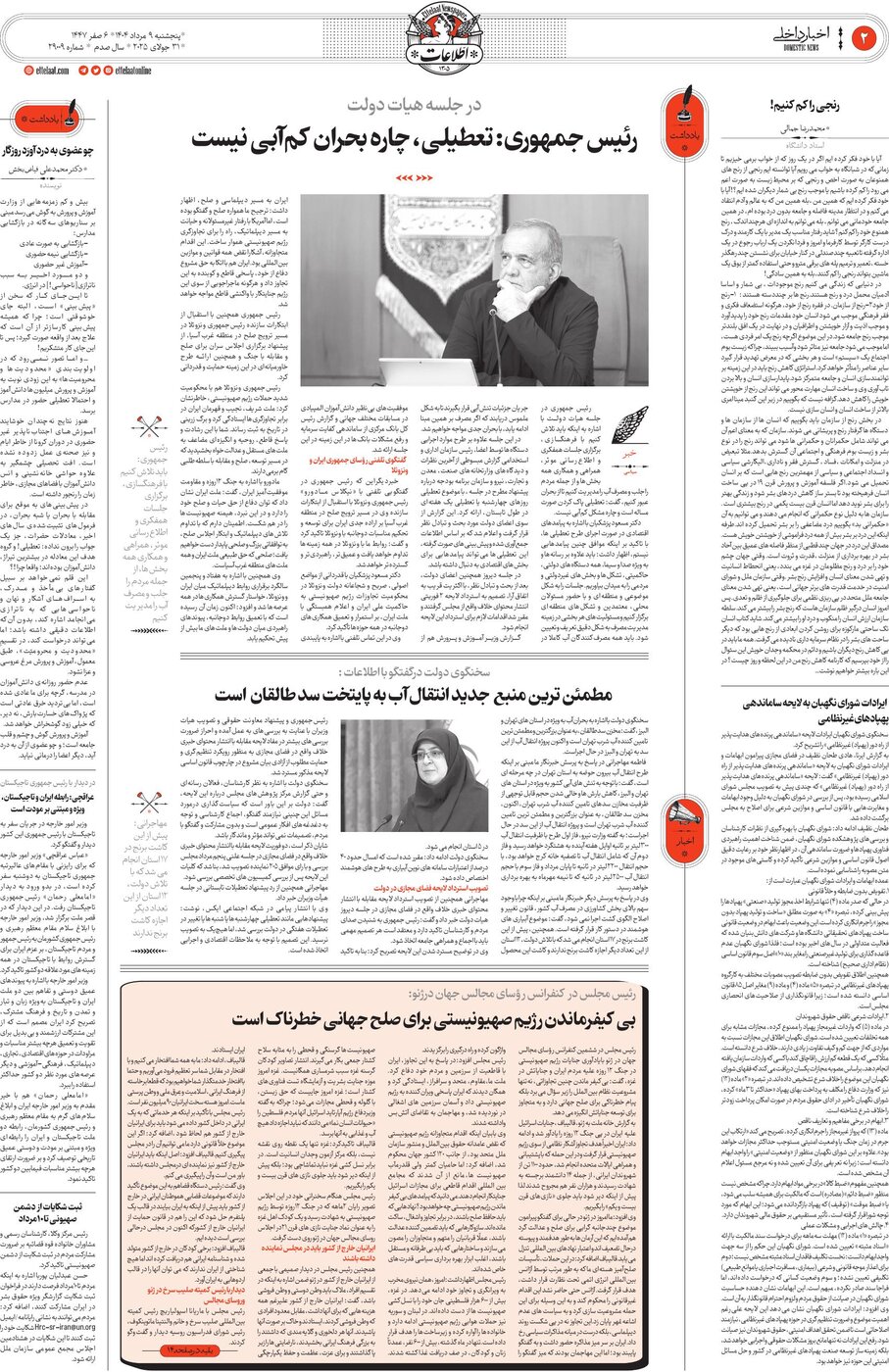 29009 - روزنامه اطلاعات - ۱۴۰۴-۰۵-۰۹