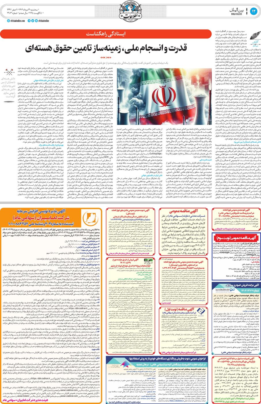 ۱۴۰۴-۰۶-۱۳ - روزنامه اطلاعات
