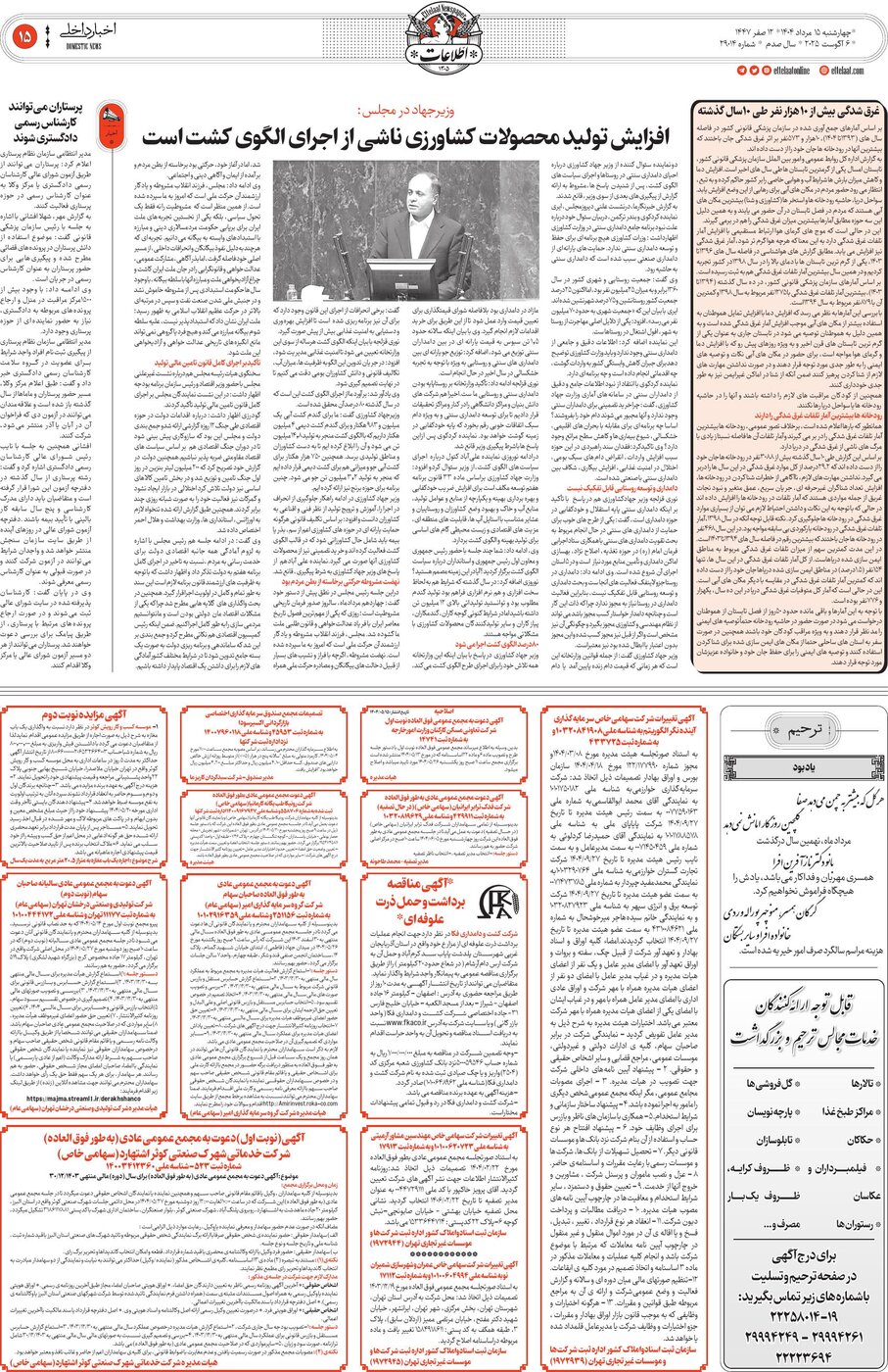 29014 - روزنامه اطلاعات - ۱۴۰۴-۰۵-۱۵