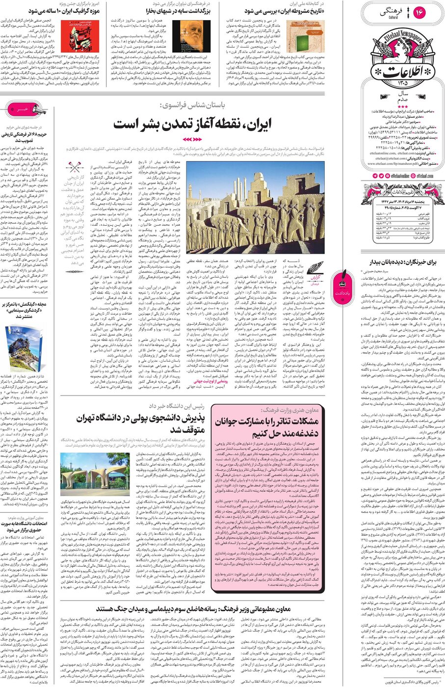 29015 - روزنامه اطلاعات - ۱۴۰۴-۰۵-۱۶