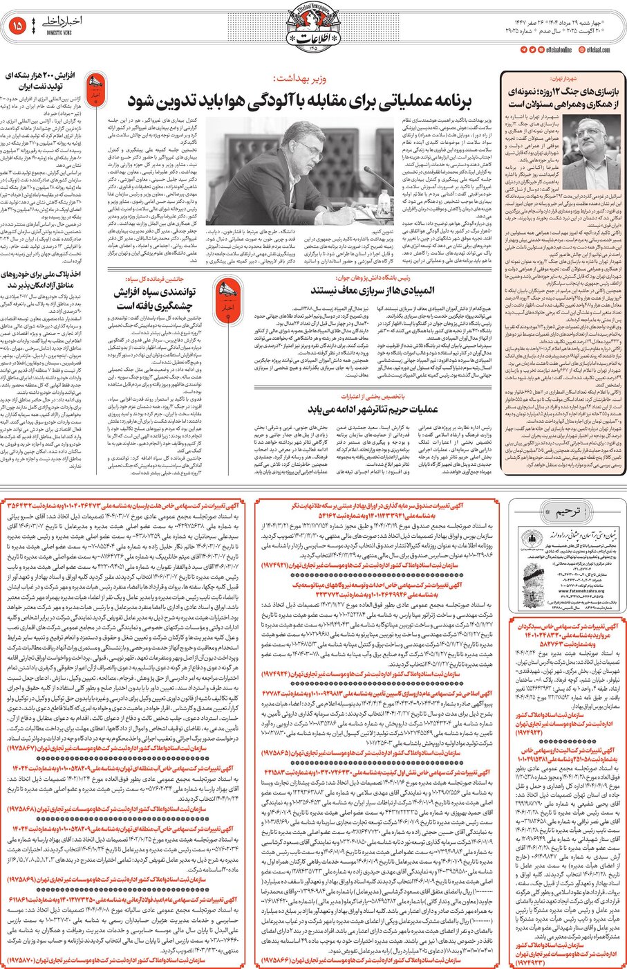 ۱۴۰۴-۰۵-۱۹ - روزنامه اطلاعات