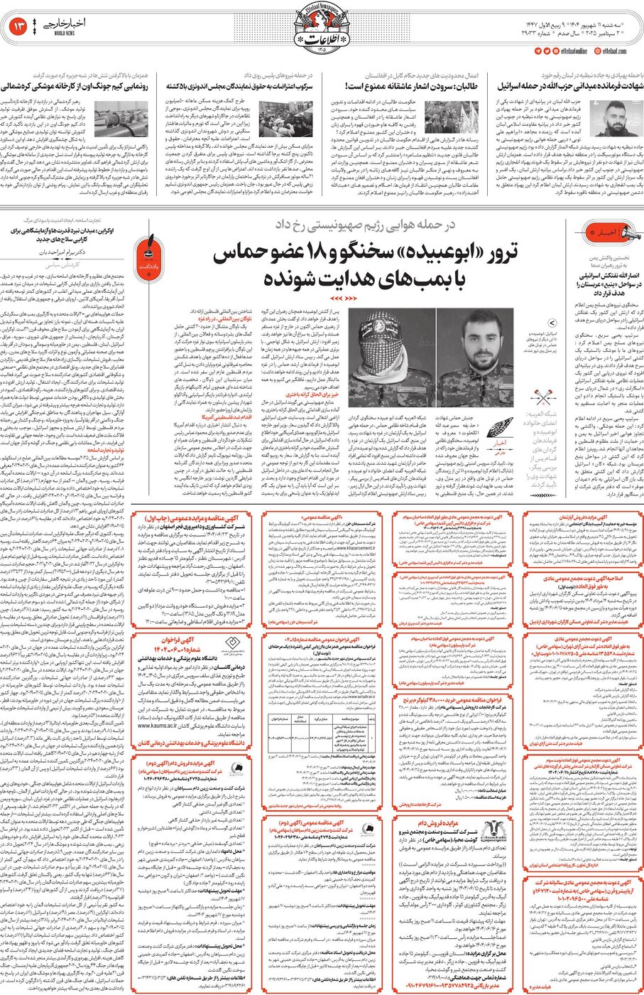 29033 - روزنامه اطلاعات - ۱۴۰۴-۰۶-۱۱