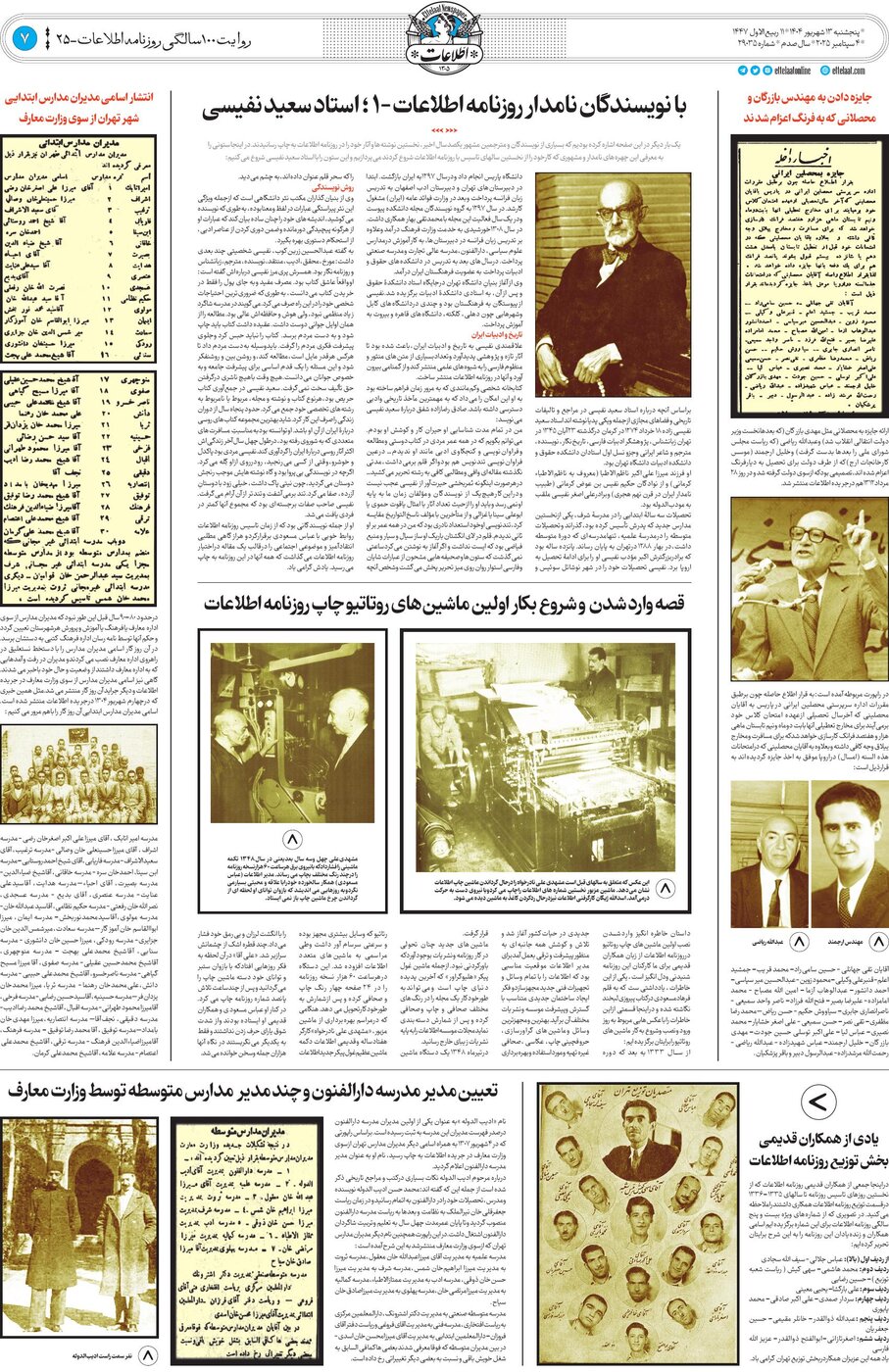 با نویسندگان نامدار روزنامه اطلاعات – ۱ ؛ استاد سعید نفیسی
