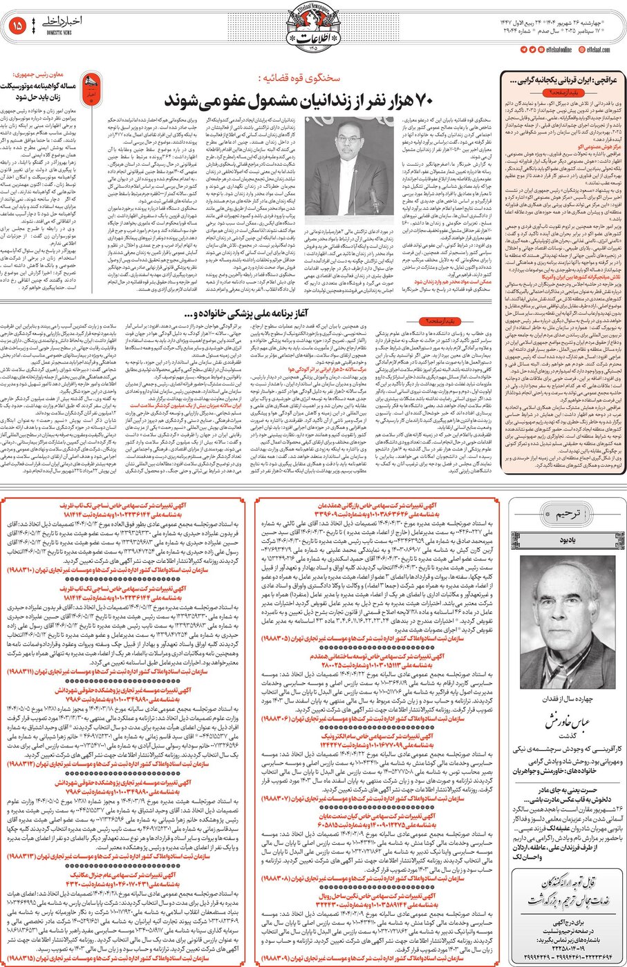 29044 - روزنامه اطلاعات - ۱۴۰۴-۰۶-۲۶