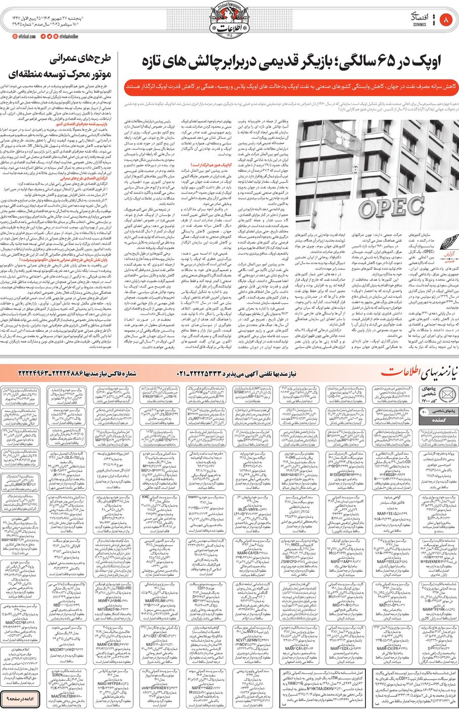 29045 - روزنامه اطلاعات - ۱۴۰۴-۰۶-۲۷