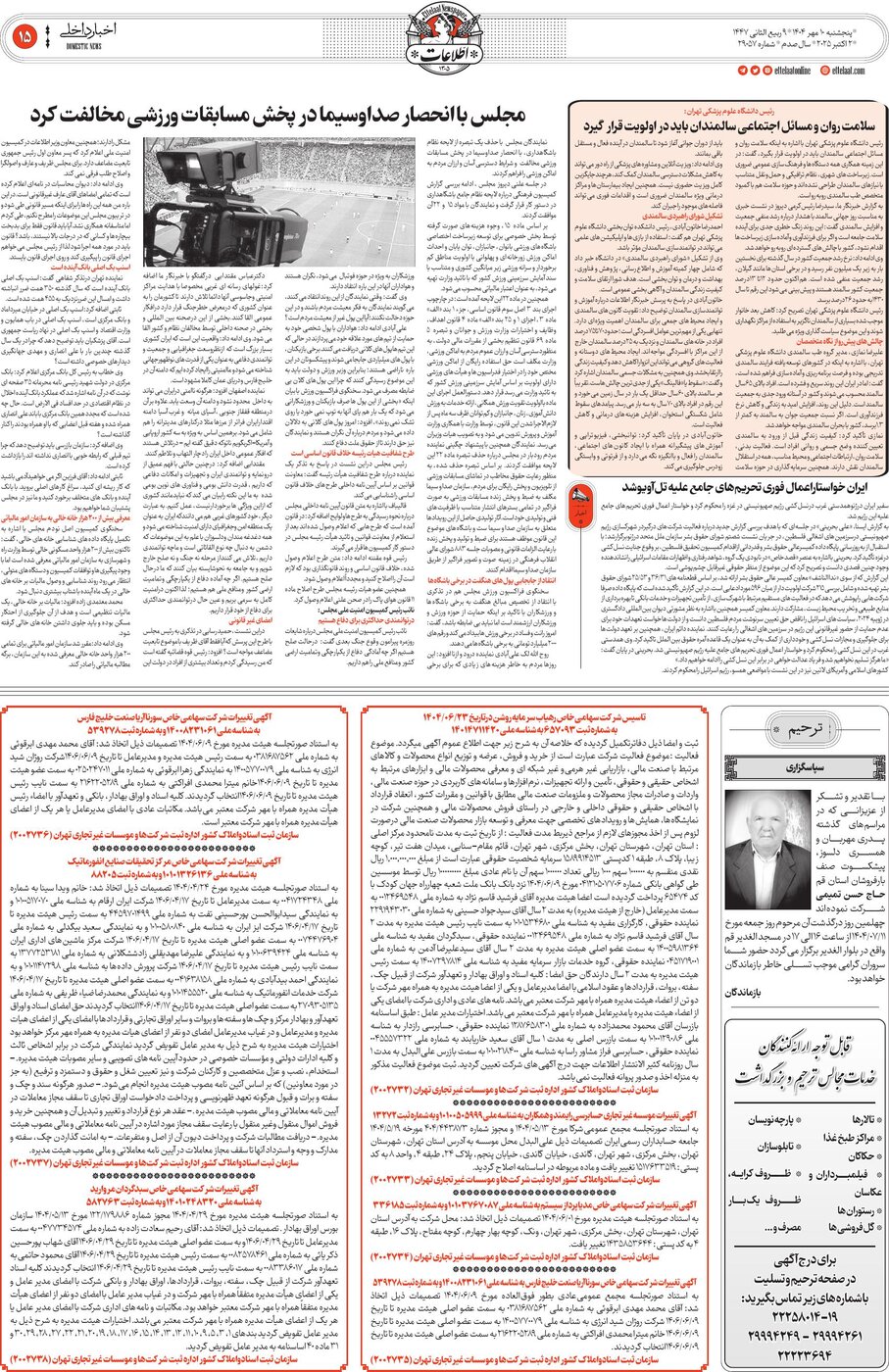 ۱۴۰۴-۰۷-۱۹ - روزنامه اطلاعات