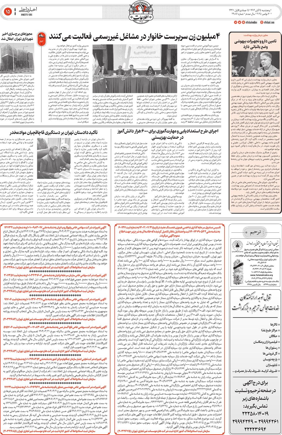 ۱۴۰۴-۰۸-۱۹ - روزنامه اطلاعات