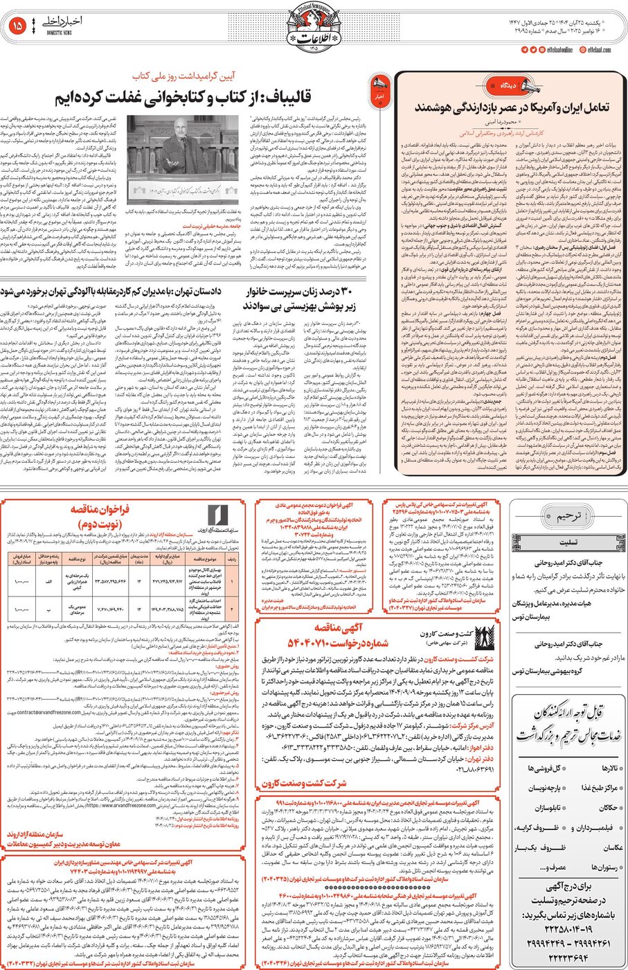 ۱۴۰۴-۰۹-۱۹ - روزنامه اطلاعات