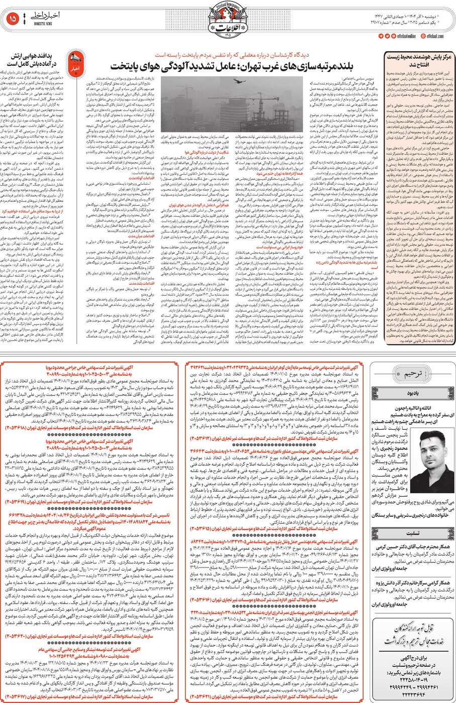 ۱۴۰۴-۰۹-۱۹ - روزنامه اطلاعات