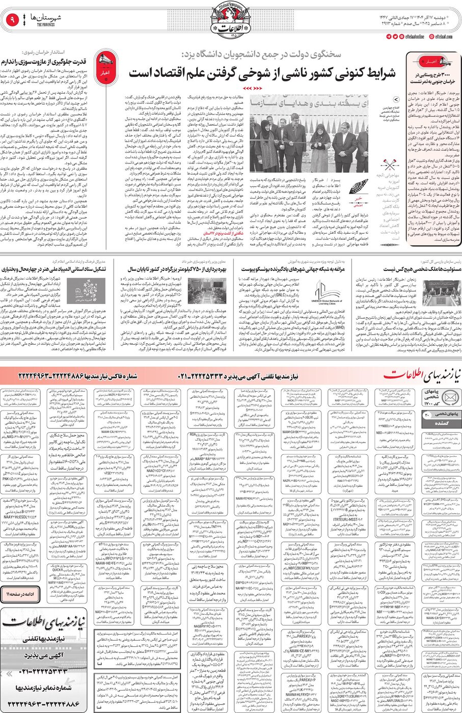 ۱۴۰۴-۰۹-۰۹ - روزنامه اطلاعات