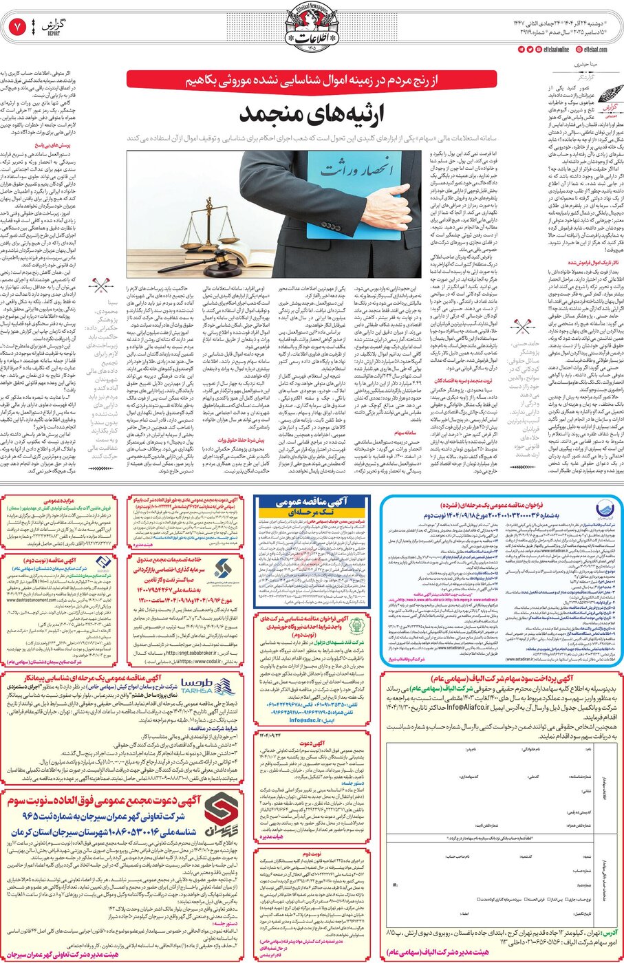 29119 - روزنامه اطلاعات - ۱۴۰۴-۰۹-۲۴