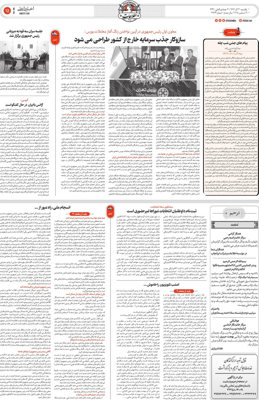 ۱۴۰۴-۰۹-۱۹ - روزنامه اطلاعات