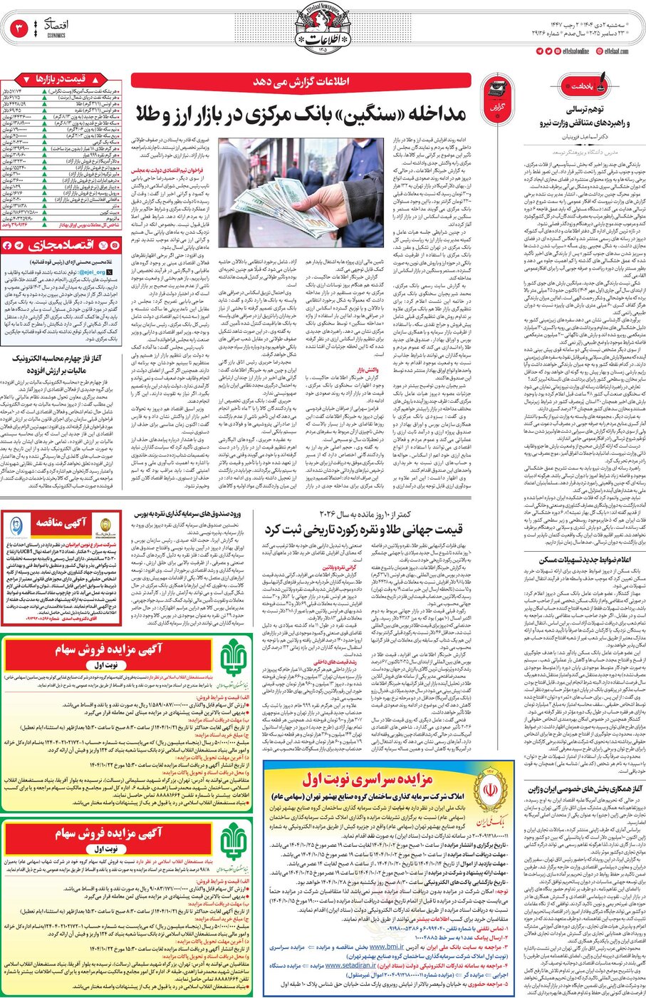 ۱۴۰۴-۱۰-۰۳ - روزنامه اطلاعات