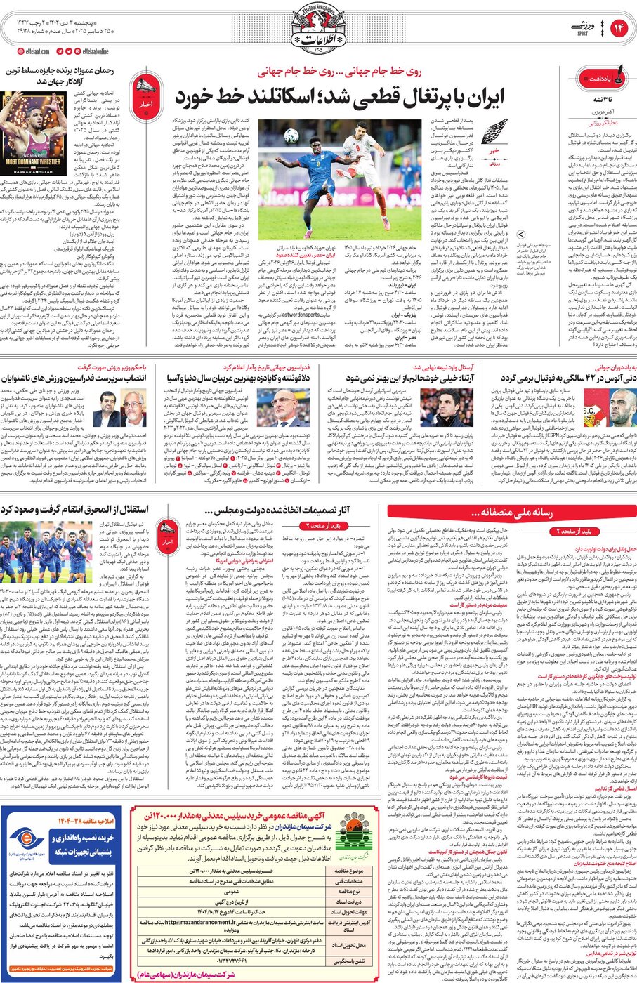 ۱۴۰۴-۰۹-۲۳ - روزنامه اطلاعات