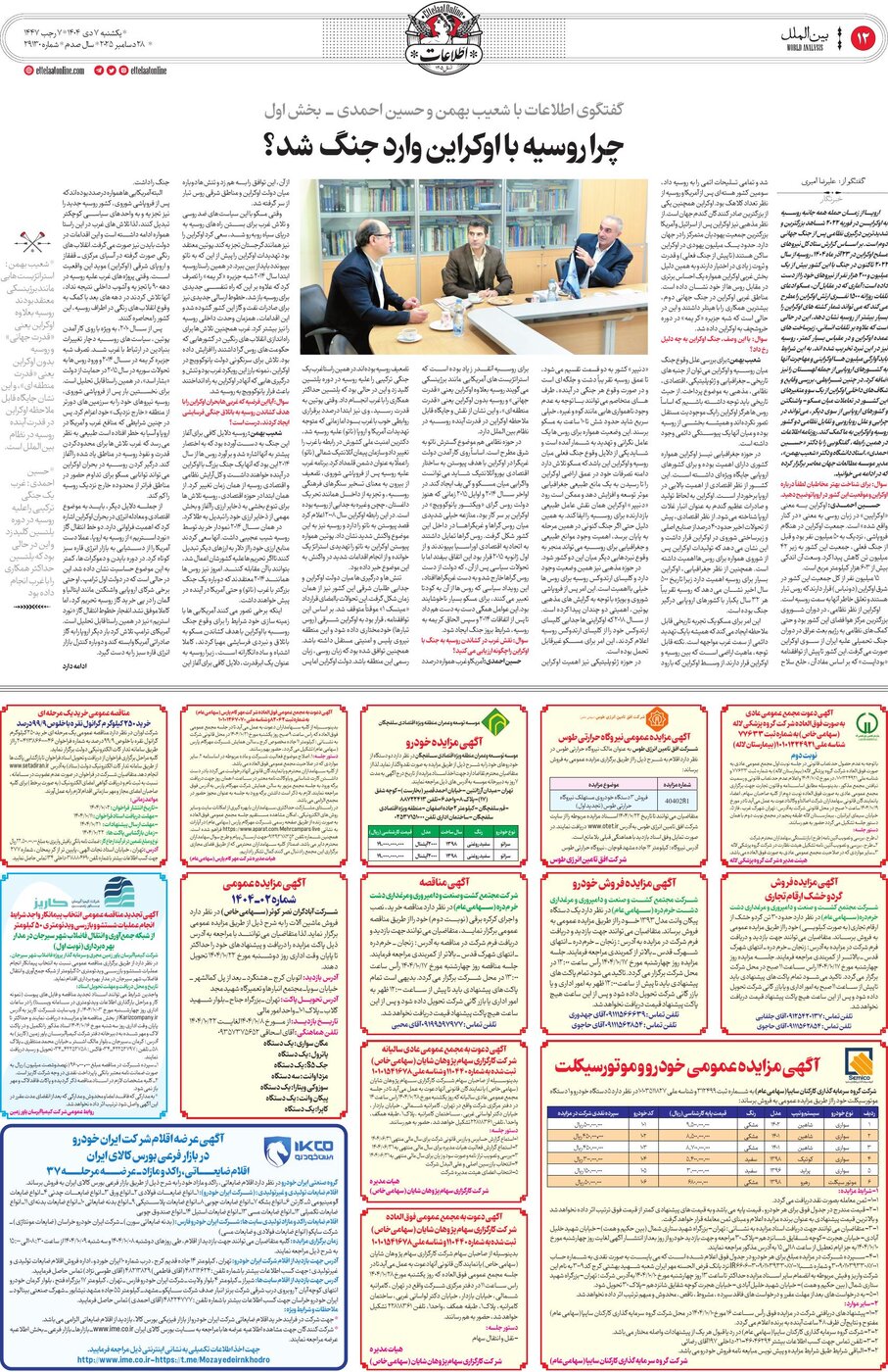 ۱۴۰۴-۰۹-۱۳ - روزنامه اطلاعات