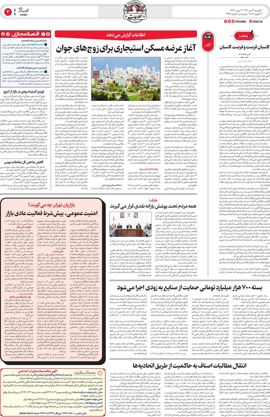 ۱۴۰۴-۱۰-۰۳ - روزنامه اطلاعات