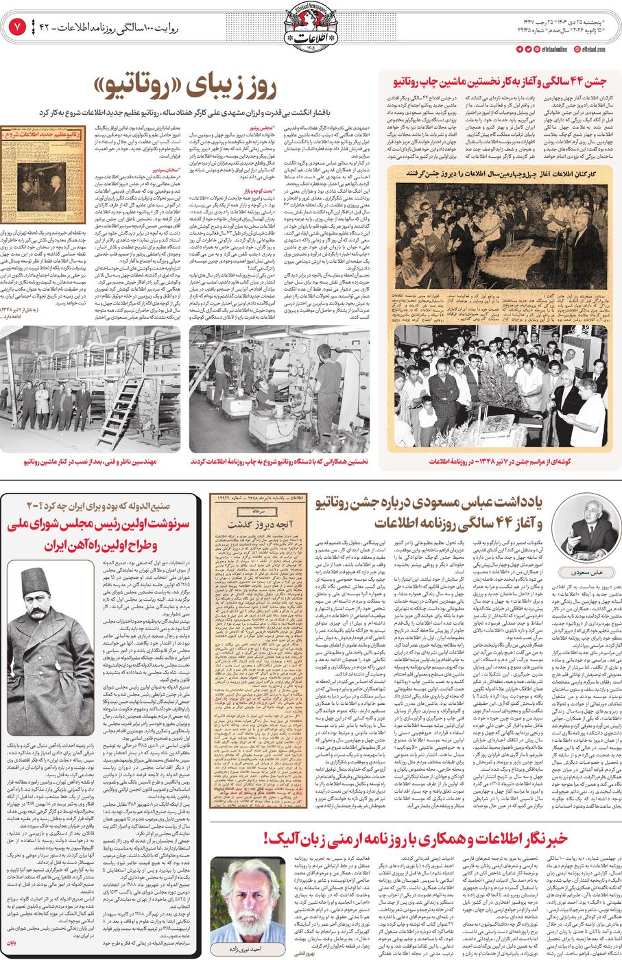 یادداشت عباس مسعودی درباره جشن روتاتیو و آغاز ۴۴ سالگی روزنامه اطلاعات
