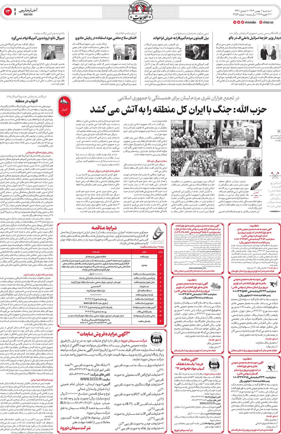 29154 - روزنامه اطلاعات - ۱۴۰۴-۱۱-۰۷