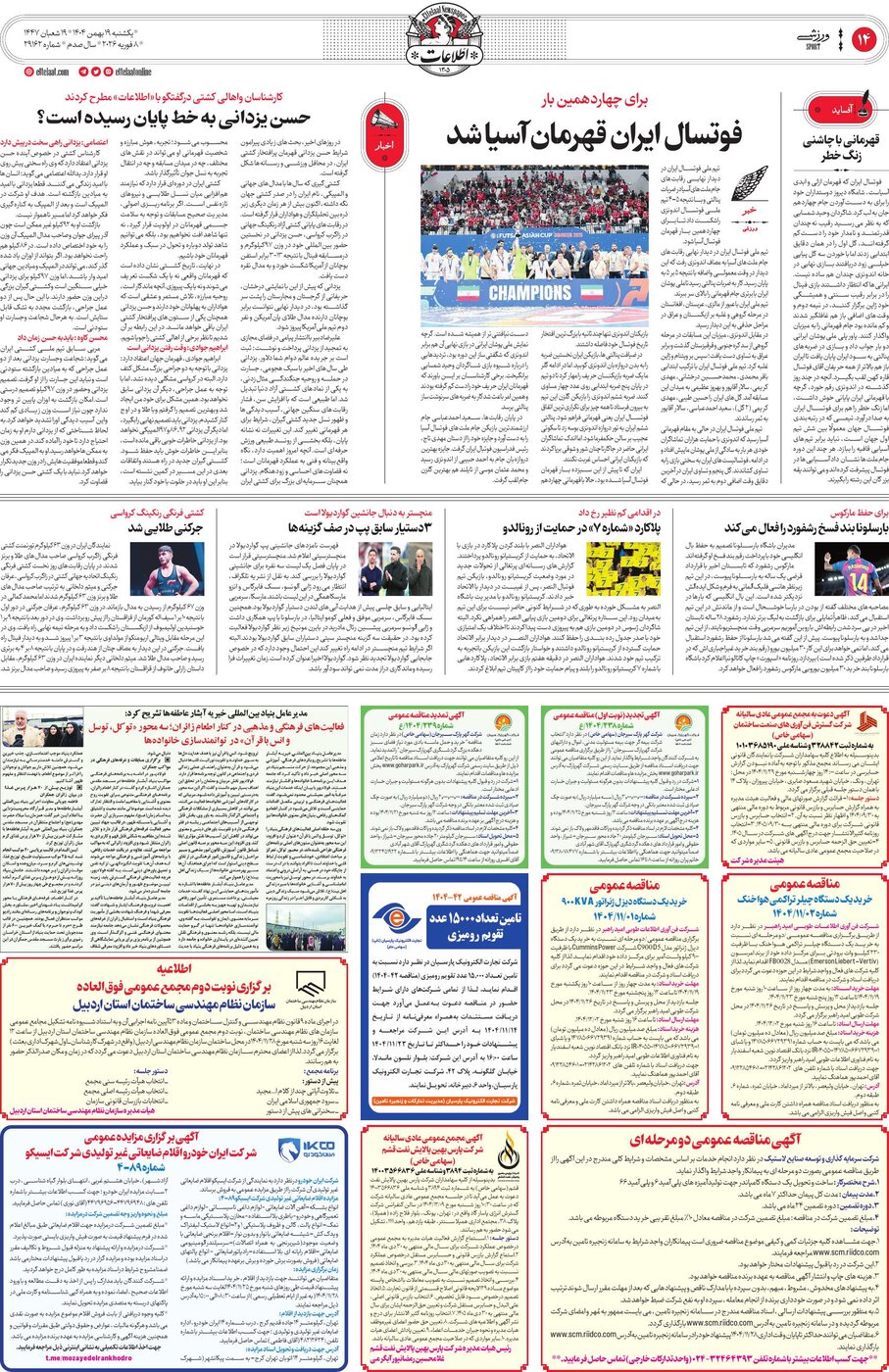 ۱۴۰۴-۱۱-۱۴ - روزنامه اطلاعات