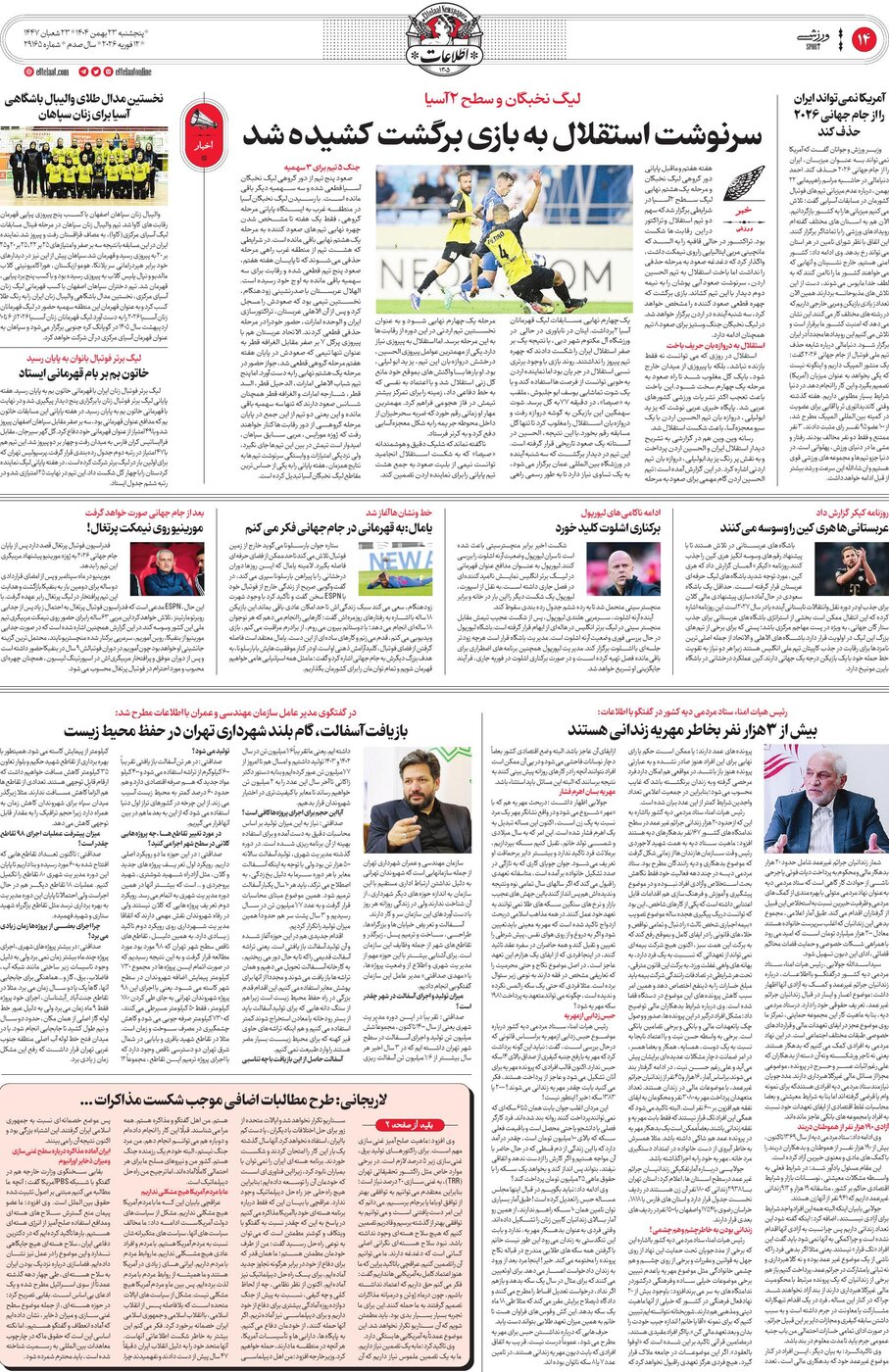 ۱۴۰۴-۱۱-۱۴ - روزنامه اطلاعات