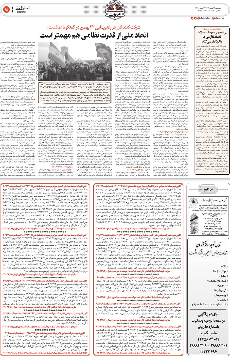 ۱۴۰۴-۱۱-۱۹ - روزنامه اطلاعات