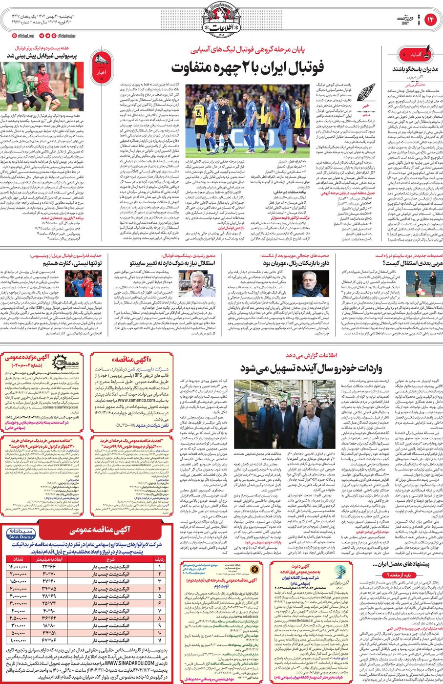 ۱۴۰۴-۱۱-۱۴ - روزنامه اطلاعات