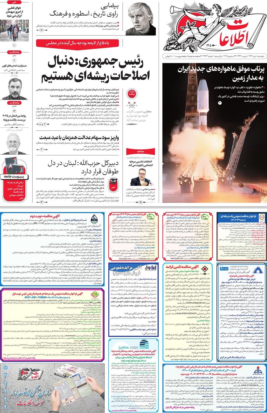 ۱۴۰۴-۰۹-۲۴ - روزنامه اطلاعات