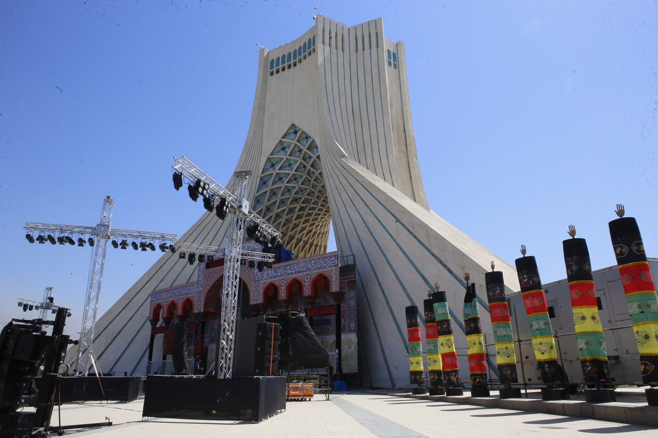 ساخت سازههای موقت دورتا دور میدان آزادی، نمای این برج را از میان برده است، این سازهها به بهانه مراسم معنوی ـ مذهبی محرم ساخته شدهاند، بهانهای که نقد به عملکرد متولیان آن را دشوار میکند. علیایحال، مسلما چنین اقدامی موجب تکریم مراسم مردمی محرم نمیشود.